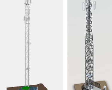We transformed 2D CAD drawings of a telecommunication tower into a precise BIM model (IFC format) for a European client. The model accurately represents all structural components, improving visualization, coordination, and documentation for design and maintenance workflows.